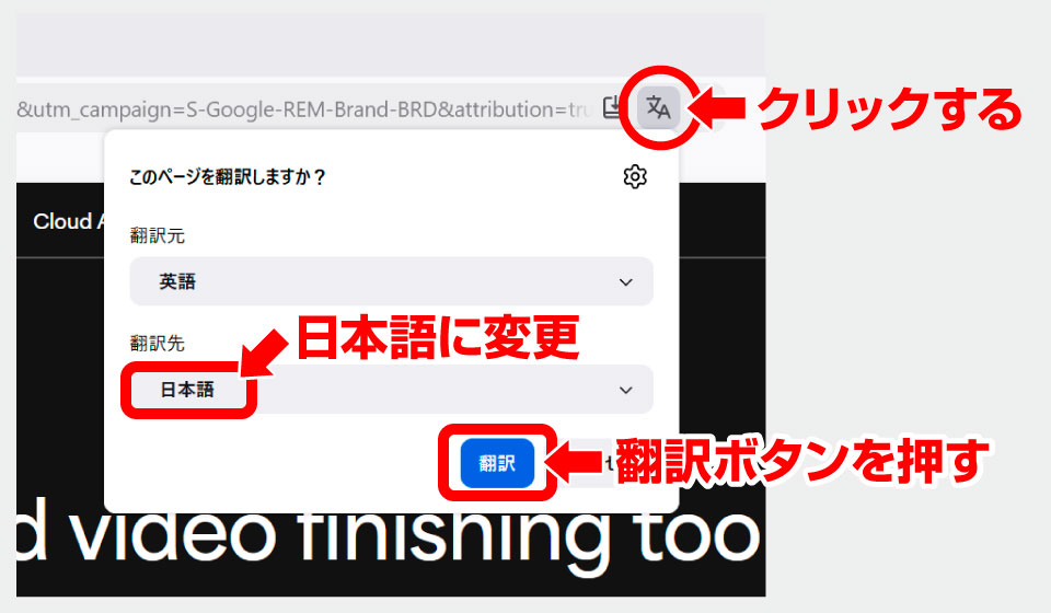 ブラウザの翻訳機能を使い公式サイトを日本語表記する