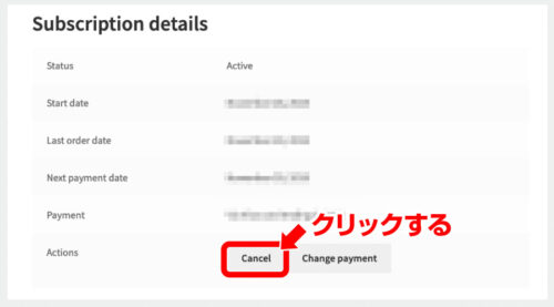 自動更新のサブスクリプションをキャンセルしました。サブスクリプションページでご確認いただけます。