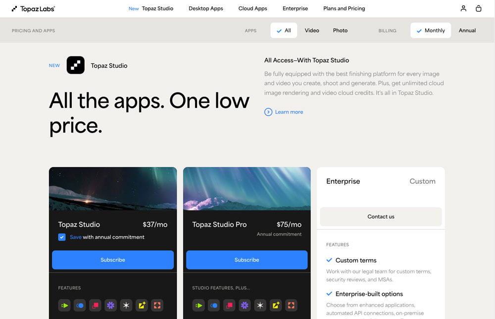 Topaz Labsソフトウェアのサブスクリプションプランの中で「最安値」で契約する方法です。