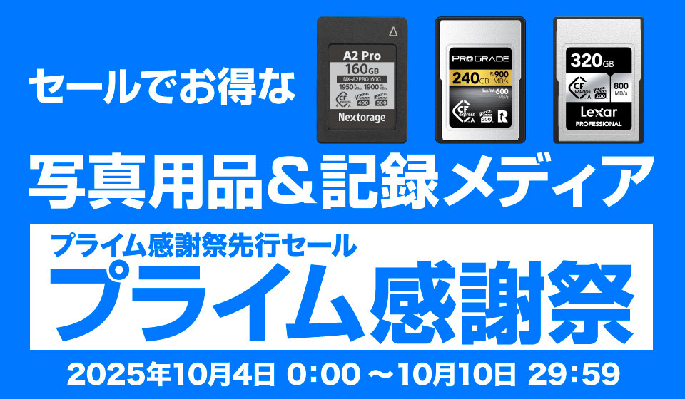2025年10月4日から「amazonプライム感謝祭&先行セール」が開催中です。写真関連の記録メディアで割引販売されるオススメ製品を選りすぐりました。いつもよりお安く購入できるチャンスなので、この機会をお見逃しなく!