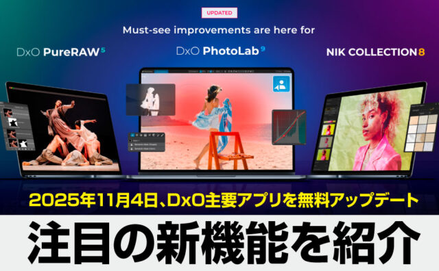 DxOは2025年11月4日、主要アプリ「DxO PureRAW 5.5」「DxO PhotoLab 9.2」「Nik Collection 8.2」を発表しました。現行バージョンを所有しているユーザーを対象に、無料で提供されています。ここ...