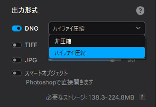 出力形式(DNGハイファイ圧縮)の効果を検証