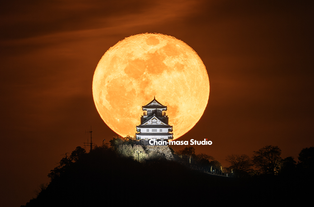 ▼ 岐阜城と月をフレームに収める場合、月の軌道と時間を緻密に計算する必要があります。