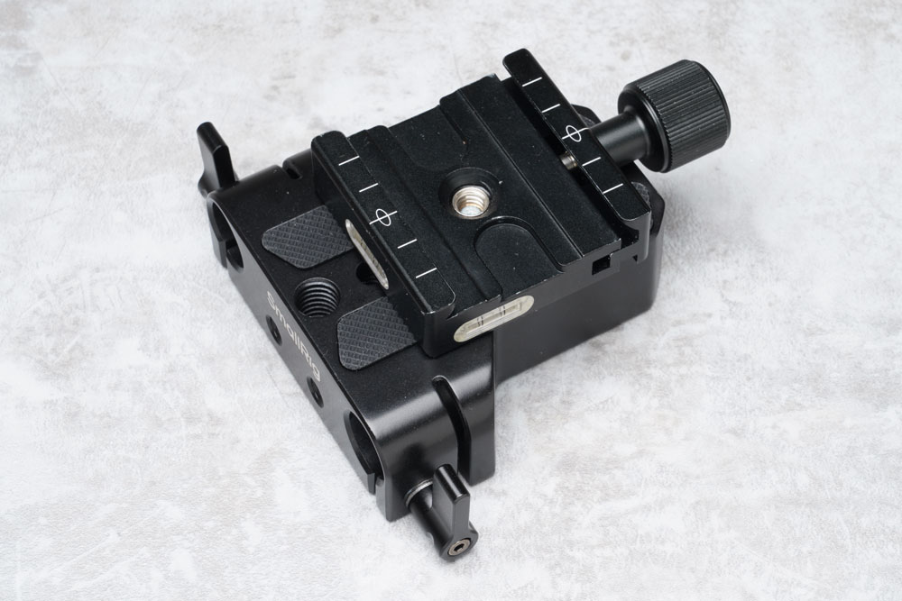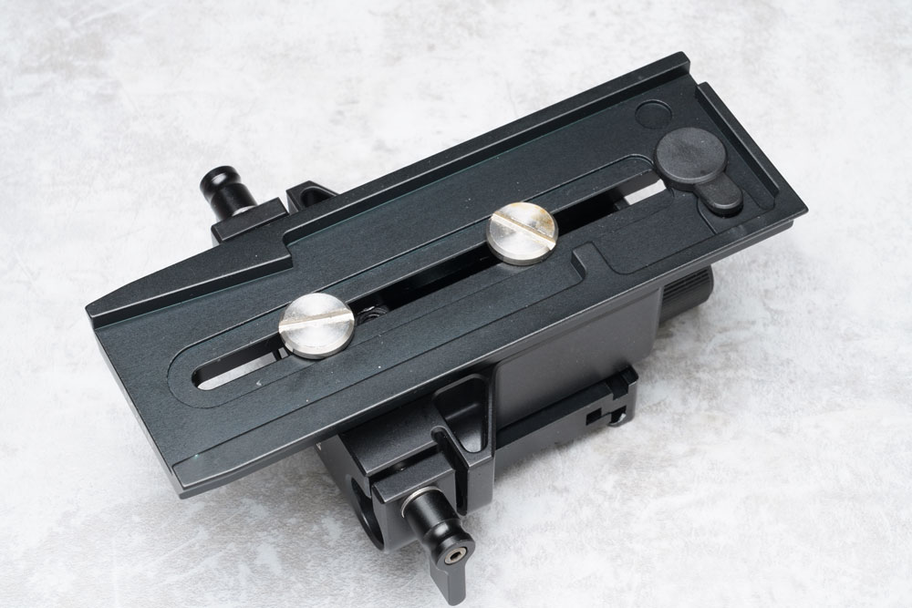 カメラ本体はアルカスイス規格で着脱できる構成とし、リグを組んだ状態でもカメラの取り外しやレンズ交換を容易にしています。