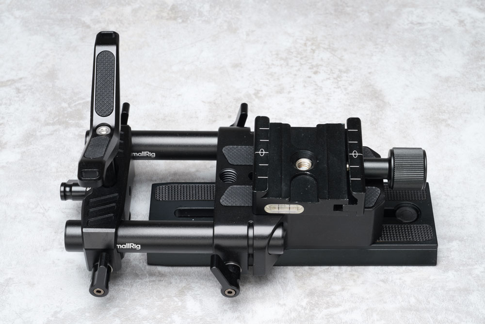プレートのみの軽量運用では不足しがちな剛性を、最小限のリグ構成で補うことを目的としています。フルリグほどの重量増加や煩雑さは避けつつ、三脚に据えた安定感を確保する「中間グレード的」な使い方を狙った構成です。