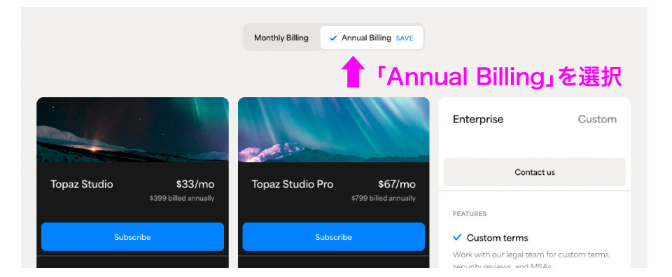| Topaz Studio | 年間399ドル (年契約・一括払い) |