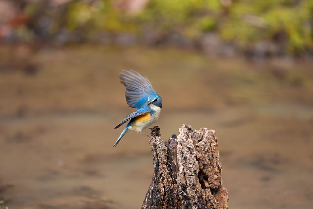 この野鳥(ルリビタキ)の写真は、半日陰の屋外環境で撮影しました。高ISOかつ高速シャッターで撮影したため、元画像にはカラーノイズと輝度ノイズが多く発生しています。