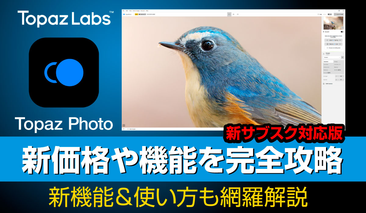 2025年9月、Topaz Labsは製品の名称を「Topaz Photo」へ変更し、ロゴマークを刷新しました。 この名称変更と同時に、同社はソフトウェアの販売方式を従来の「買い切り式の永久ライセンス」から「サブスクリプション」へと大きく転換し、料金体系を一新。これは、アドビがCS6からCreative Cloudへ移行した際の状態と類似した、販売戦略の大転換になります。