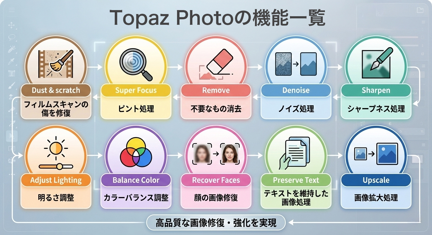 製品名 主な特徴・強み Topaz Photoとの決定的な違い