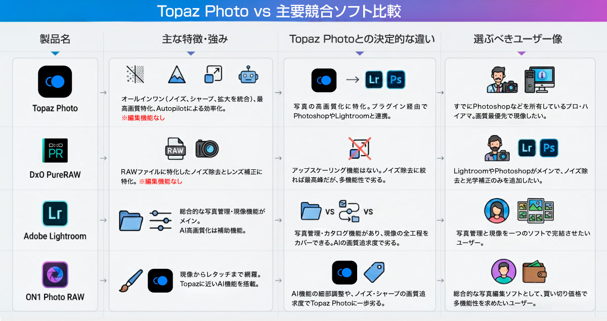 Topaz Photo vs 主要競合ソフト比較