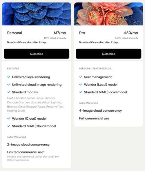 Topaz Photoは、競合ソフトより高価なサブスクリプションですが、プロカメラマンやハイアマチュアに選ばれる明確な理由があります。