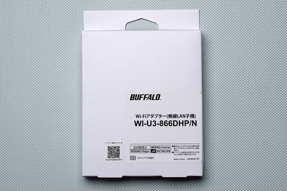今回は親機ルーターがWi-Fi5(IEEE802.11ac)だったため最新規格にこだわるのではなく、親機との相性と安定接続を優先してバッファローWI-U3-866DHP/Nを導入しました。